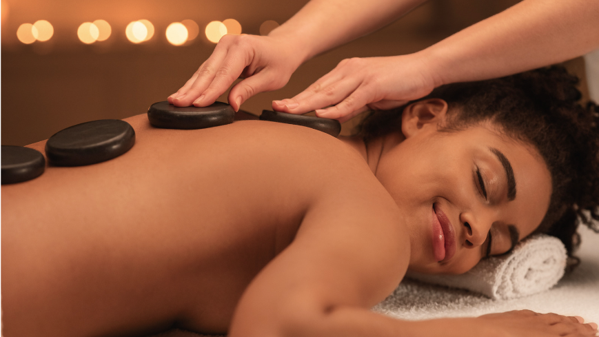 Hot stone massage therapy involves the use of smooth, heated stones. The therapist places the stones on specific points on your body and may also hold heated stones while giving the Relaxation massage. The localised heat and weight of these volcanic basalt stones warm up and relax muscles, allowing the therapist to apply deeper pressure to those areas, without causing discomfort, to melt away tension, increase circulation and metabolism.